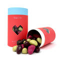 Our chocolate fruit salad, is a mix of passion fruit pistachio, hazelnut dark chocolate, strawberry pecan, and raspberry almond.